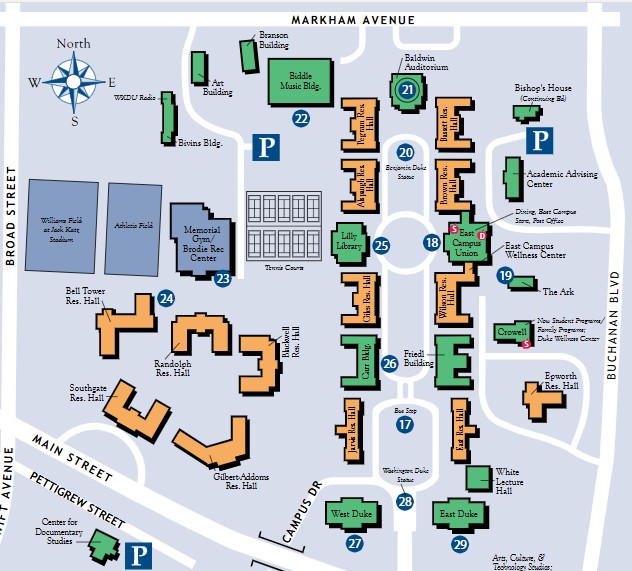 East Duke Building. Rooms: East Duke 108; East Duke 209; East Duke 204D; East Duke 204B. (click for directions and maps)
